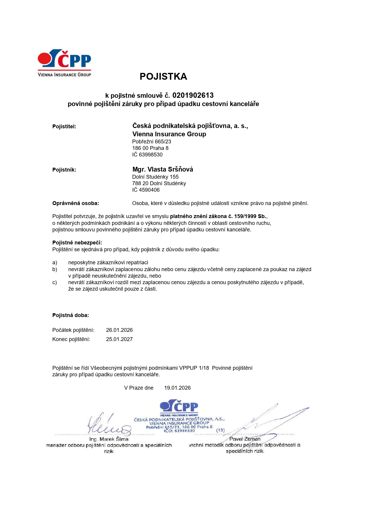 Pojištění proti krachu CK 2026